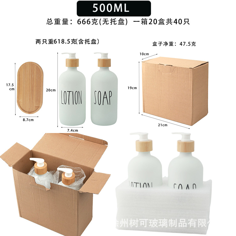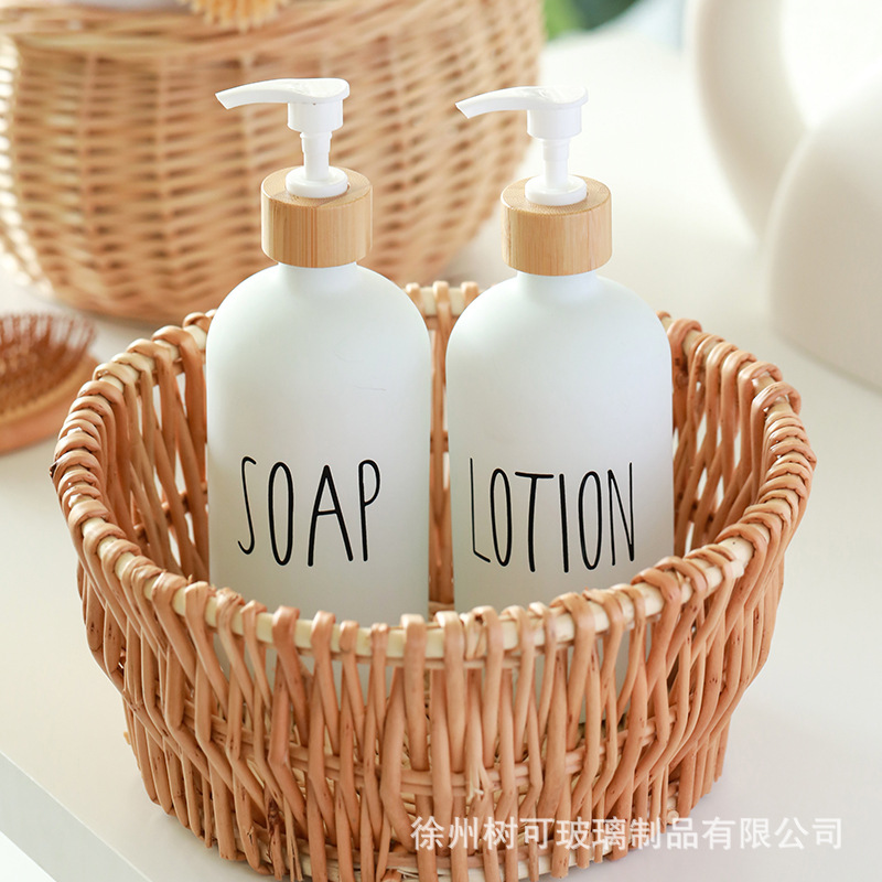 Glass Hand Sanitizer Bottle16oz Push Type Dispensing Bottle Empty Bottle Matt White Letter Shampoo Bottle
