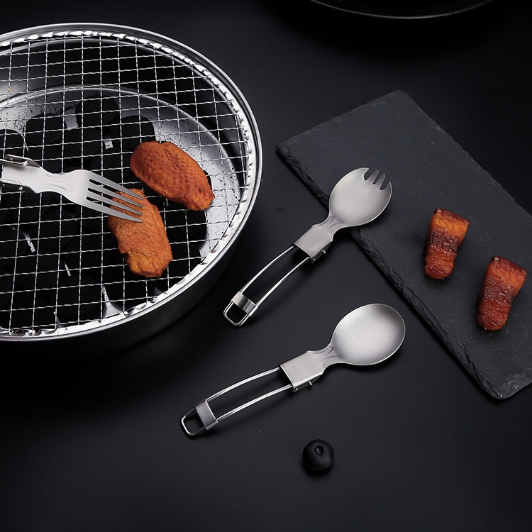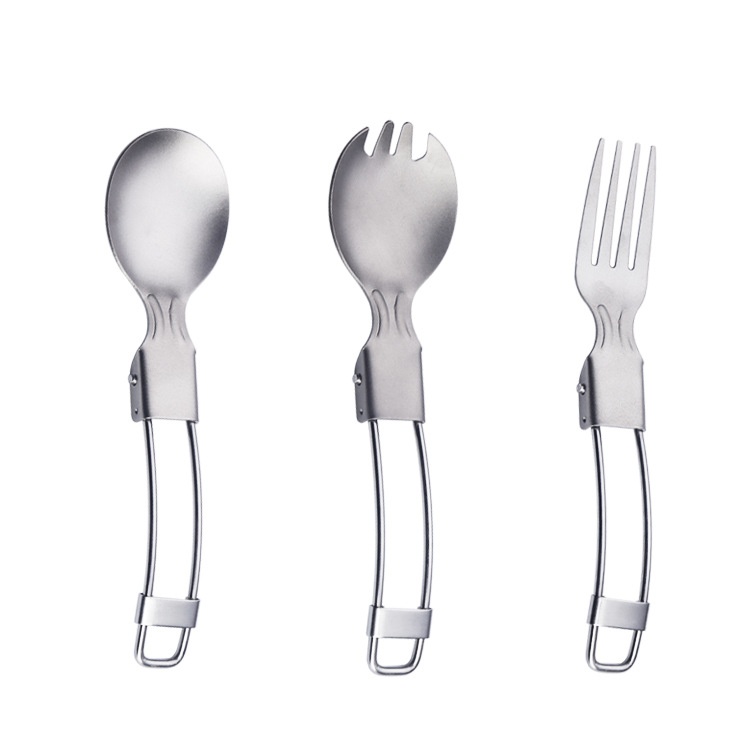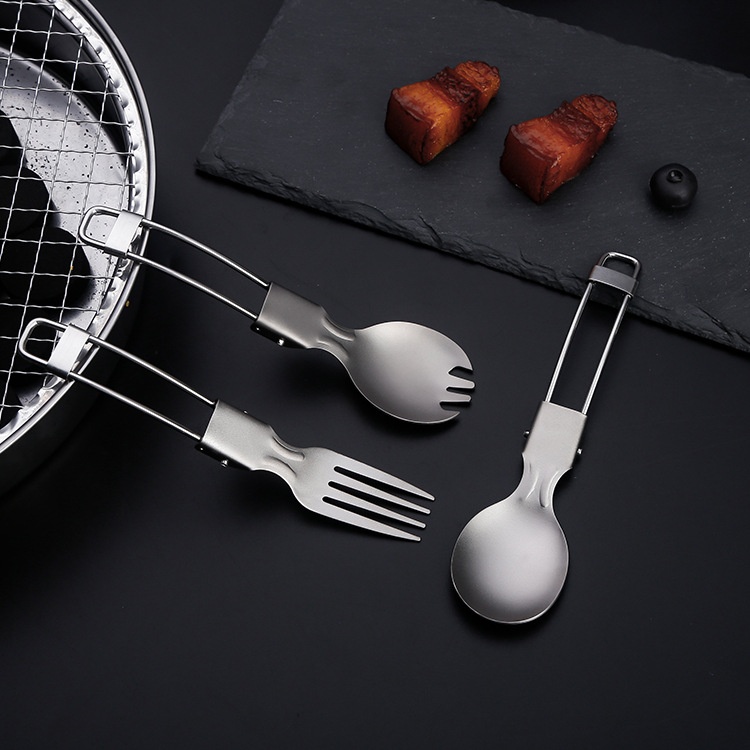 Outdoor Pure Titanium Knife, Fork And Spoon Camping Simple Folding Tableware Portable Set Picnic Fruit Fork And Spoon
