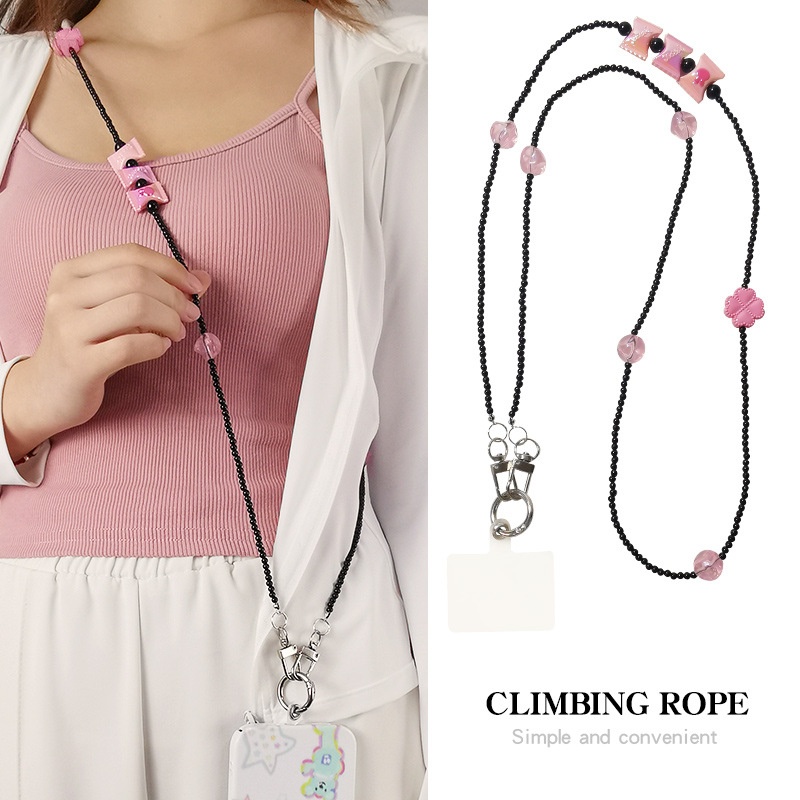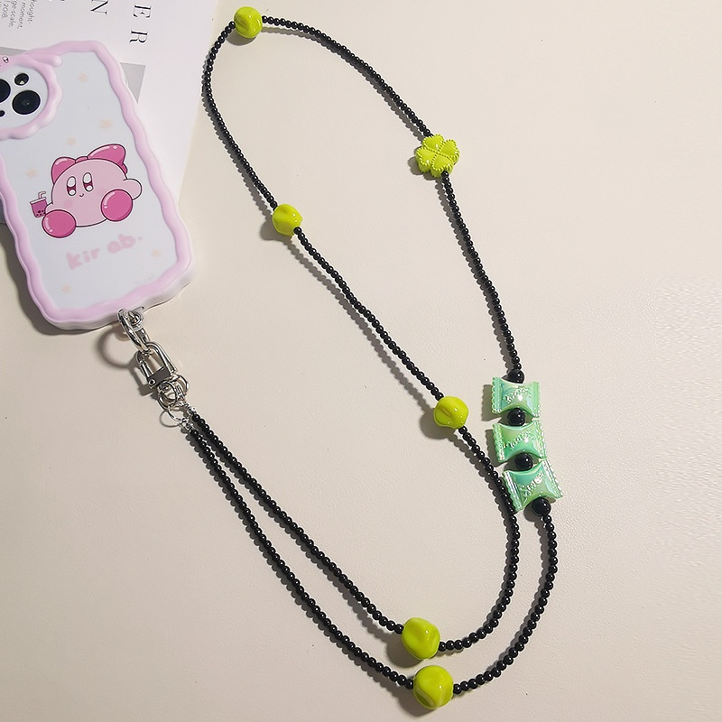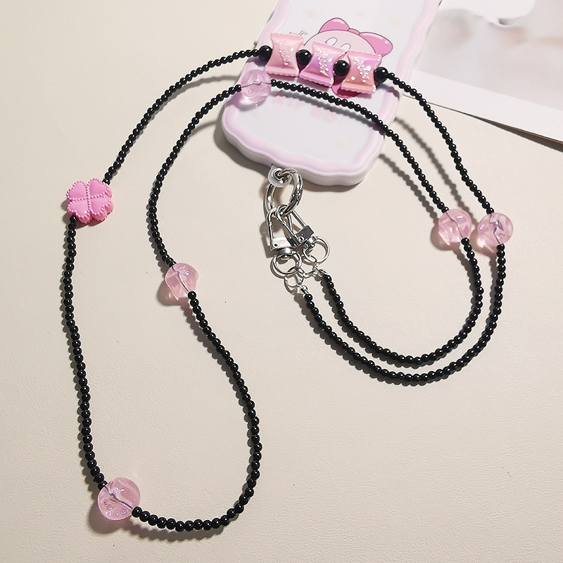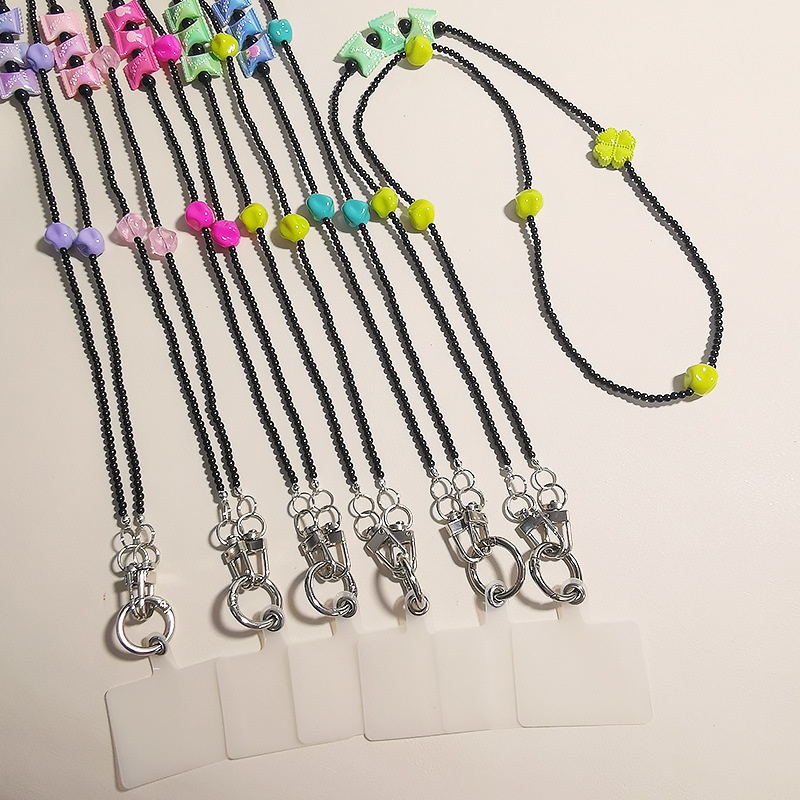Mobile Phone Lanyard Cross-body Long Women's Model Can Be Carried Across The Shoulder,Cross-body Hanging Chain Rope Strong Four-leaf Clover Candy Mobile Phone Case Universal
