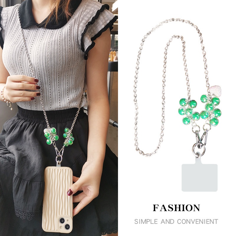 Mobile Phone Lanyard Long Cross-body Carryable Personalized Love Pendant Beaded Pendant Universal Female Mobile Phone Case Bag Anti-lost