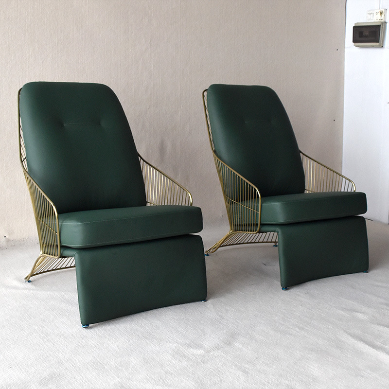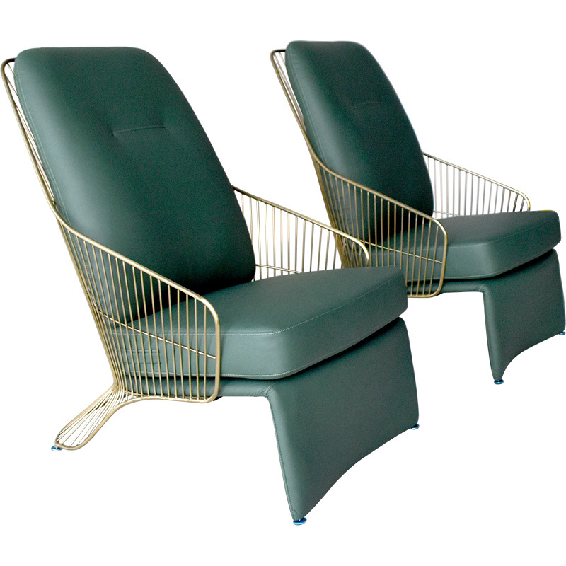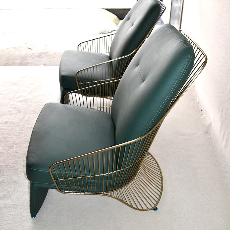 Light Luxury Simulated Leather Stainless Steel Chair Designer Seat Living Room Seating Area Style Sofa Creative Leisure Chair