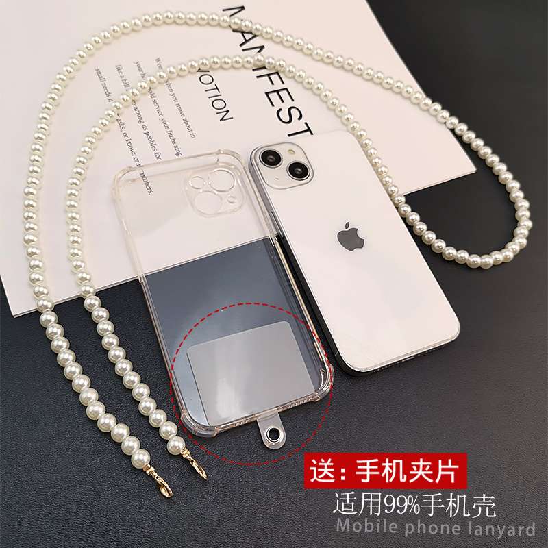 Mobile Phone Lanyard Long Cross-body Carryable Handmade Beaded Hanging Chain High-end Women's Mobile Phone Case Anti-lost Sling Strap Style