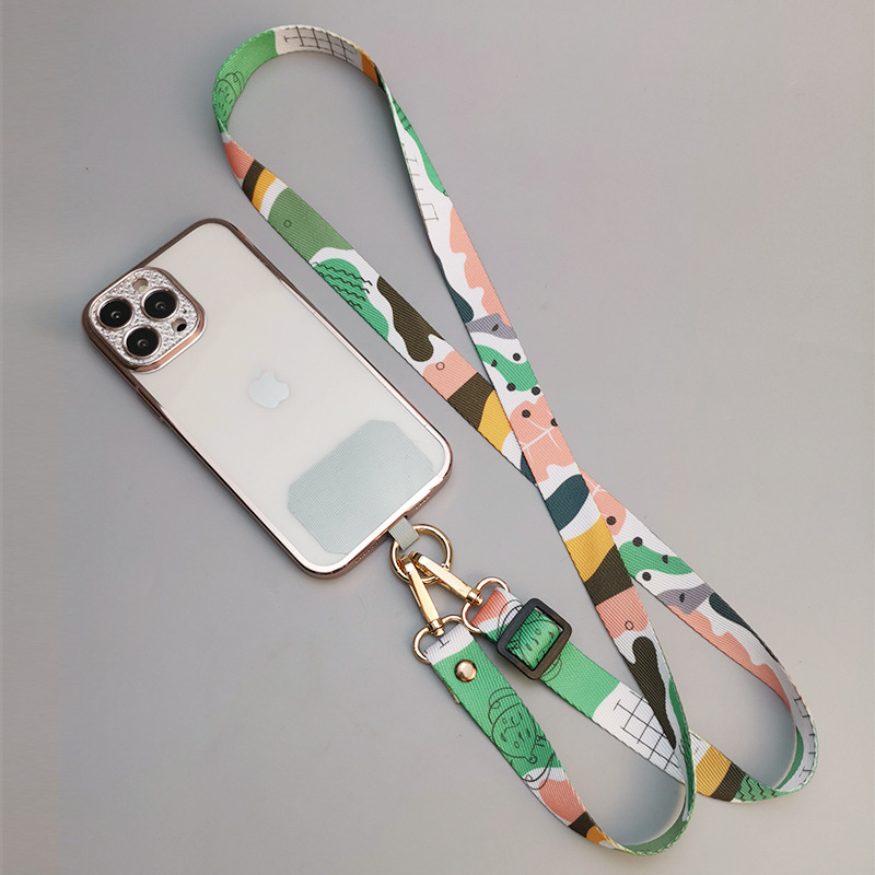 Colorful Crossbody Strap Mobile Phone Lanyard Clip Women's Hanging Chain Canvas Pattern Mobile Phone Chain Hanging Neck Lengthened Adjustable