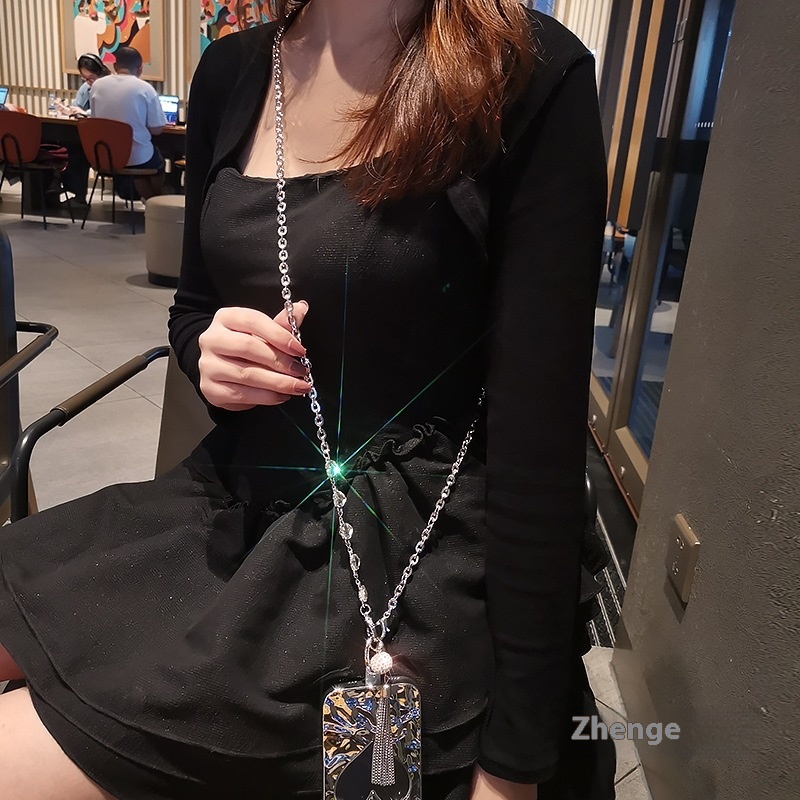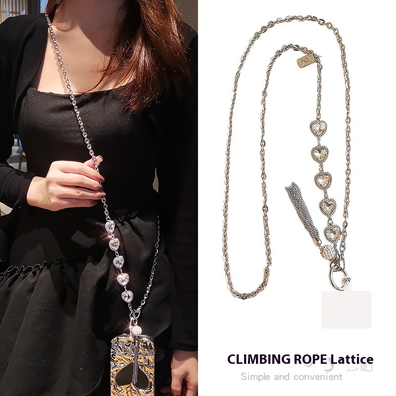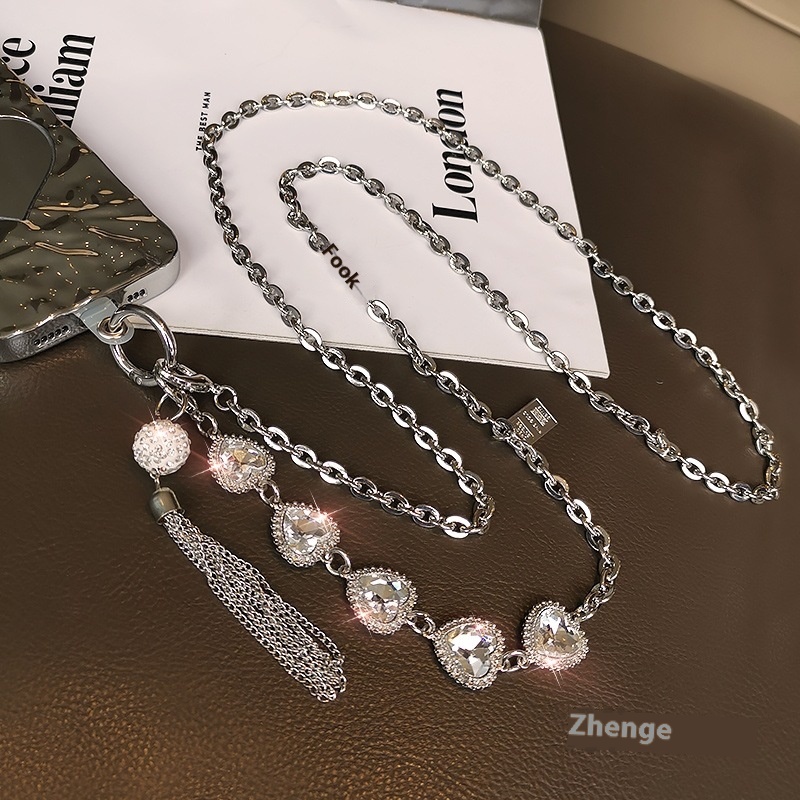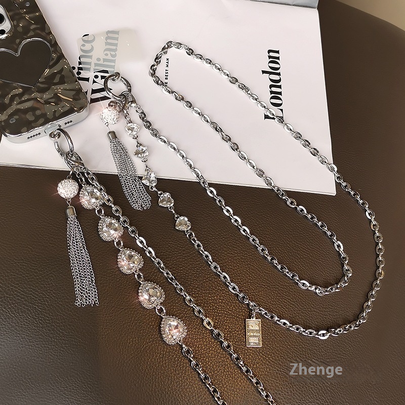 Rhinestone Tassel Pendant Crossbody Mobile Phone Lanyard Back Rope Fashionable Pendant Strong And Strong Metal Chain Chain