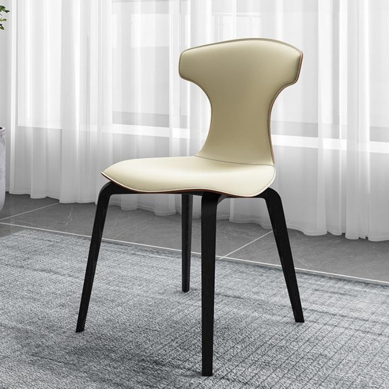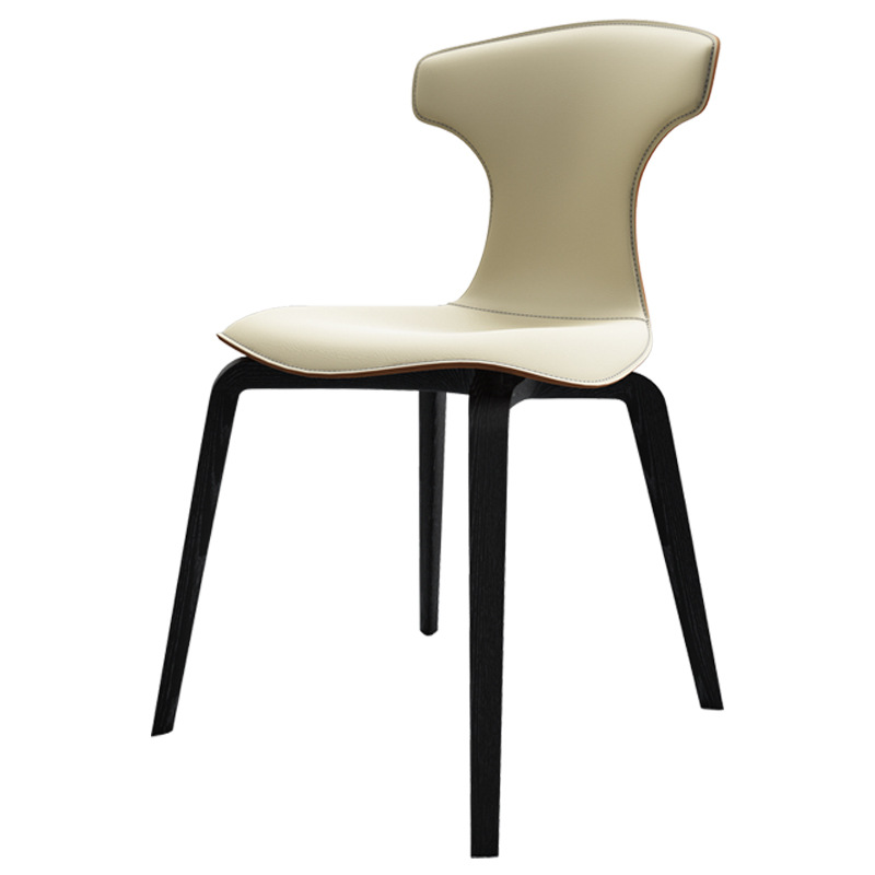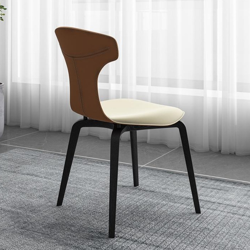Italian Light Luxury Saddle Leather Chair Home Armless Dining Chair Designer Simple Minimalist Solid Wood Chair