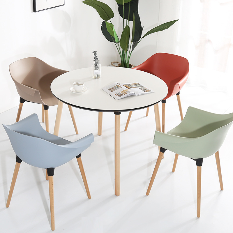 Nordic Plastic Chair Internet Celebrity Household Light Luxury Dining Chair Solid Wood Backrest Simple Negotiation Chair Office Computer Chair