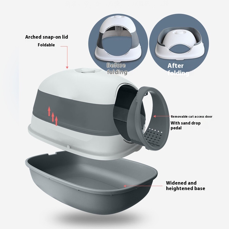 Soft Plastic Foldable Cat Litter Box, Fully Enclosed, Odor-proof And Splash-proof Cat Litter Box With U V Rays, Large Cat Toilet