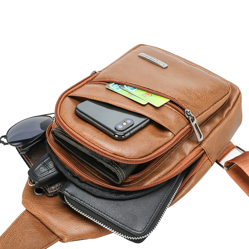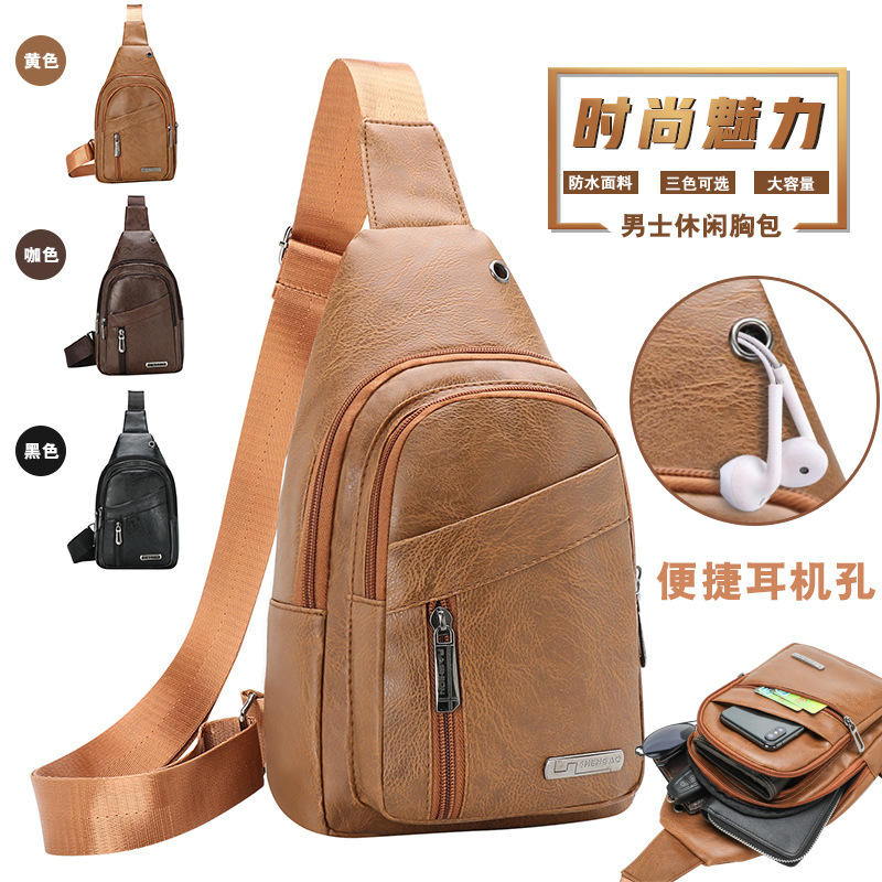 YMen's PUSoft Leather Chest Bag Waterproof Casual Simple Shoulder Bag Business Crossbody Bag Dropshipping
