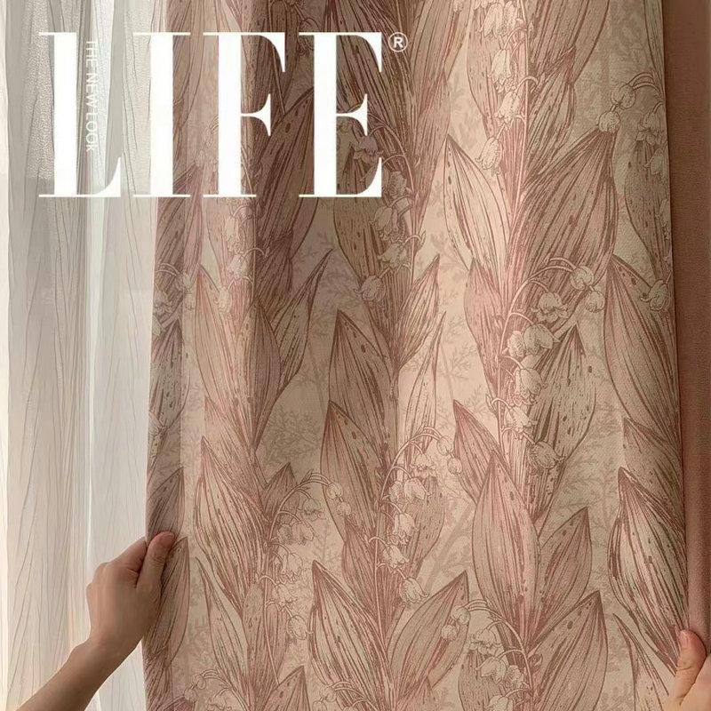 Thickened Chenille And Printed Blackout Curta Milk Tea Matcha Green Living Room Curta Modern Finished Curta