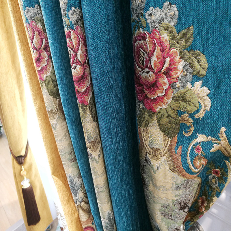 Chenille Luxury European Chenille Jacquard Curtain Fabric Villa Blackout Bedroom Living Room Simple European Finished Curta