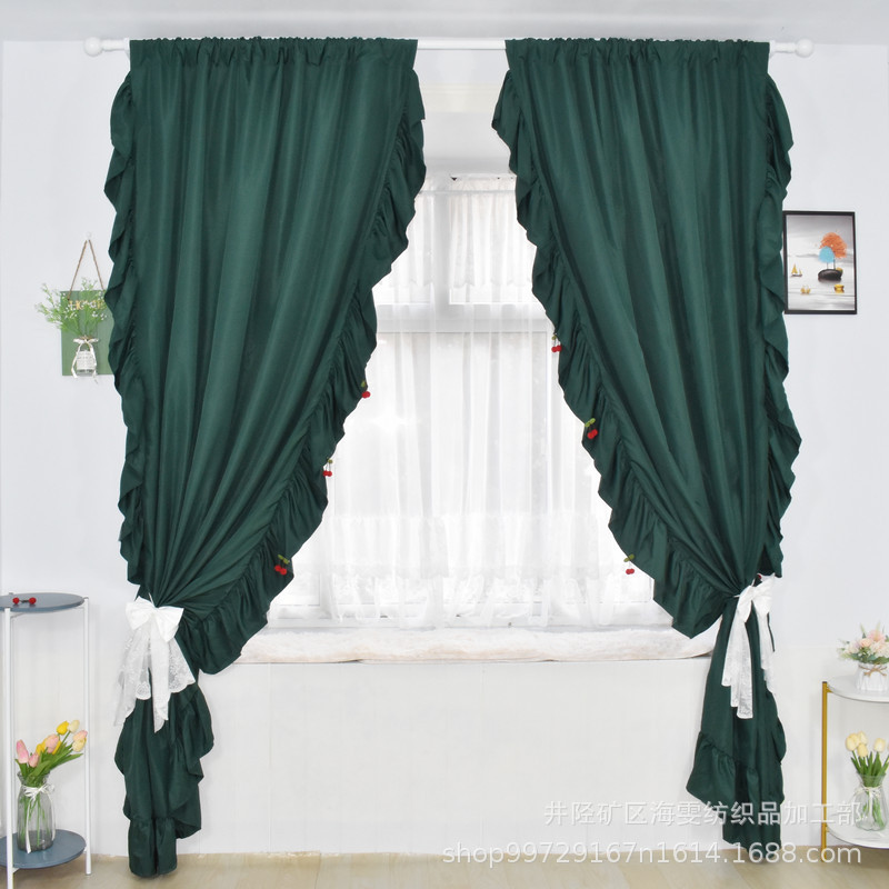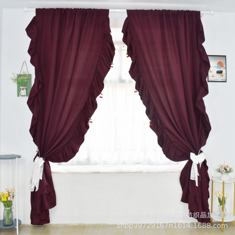 Foreign Trade Finished Curta American Ruffled Princess Style Partition Curta Nordic Style Solid Color Rod Curta