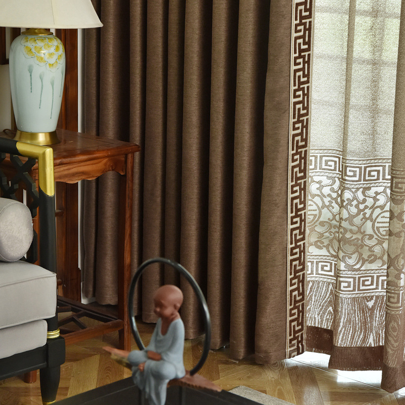 OQ5 MChinese Style Cotton And Linen Curta Bedroom Thickened Blackout Fabric Finished Atmospheric Gauze Curtain Living Room