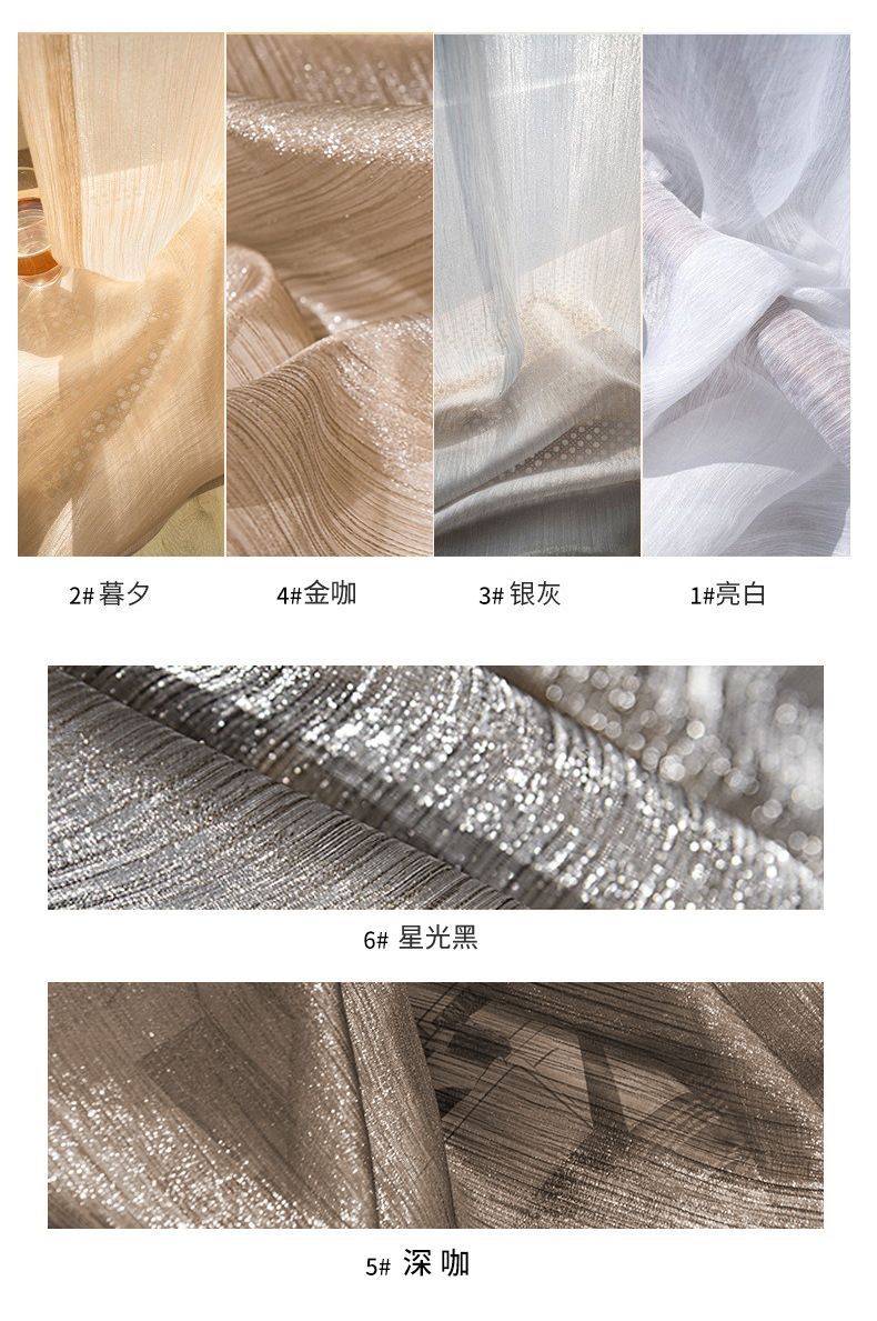Dreamy Golden Gauze Light Luxury French Color Self-adhesive Punch-free Finished Product High-end Breathable Living Room Bay Window Gauze Curtain
