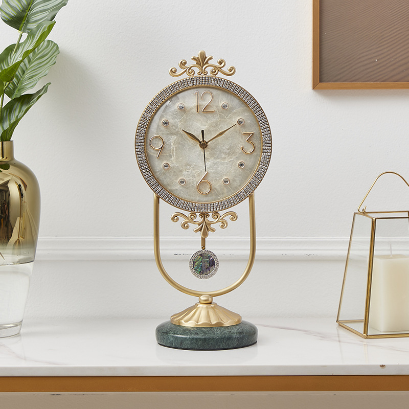 Brass Table Clock Table Clock Desktop Living Room Simple Home Clock Modern Sitting Clock Bedroom Silent Quartz Clock Ornaments