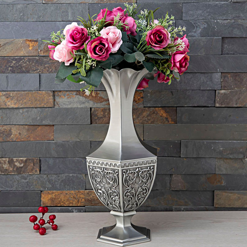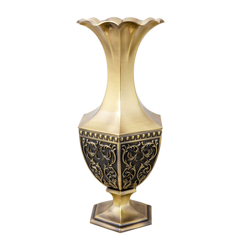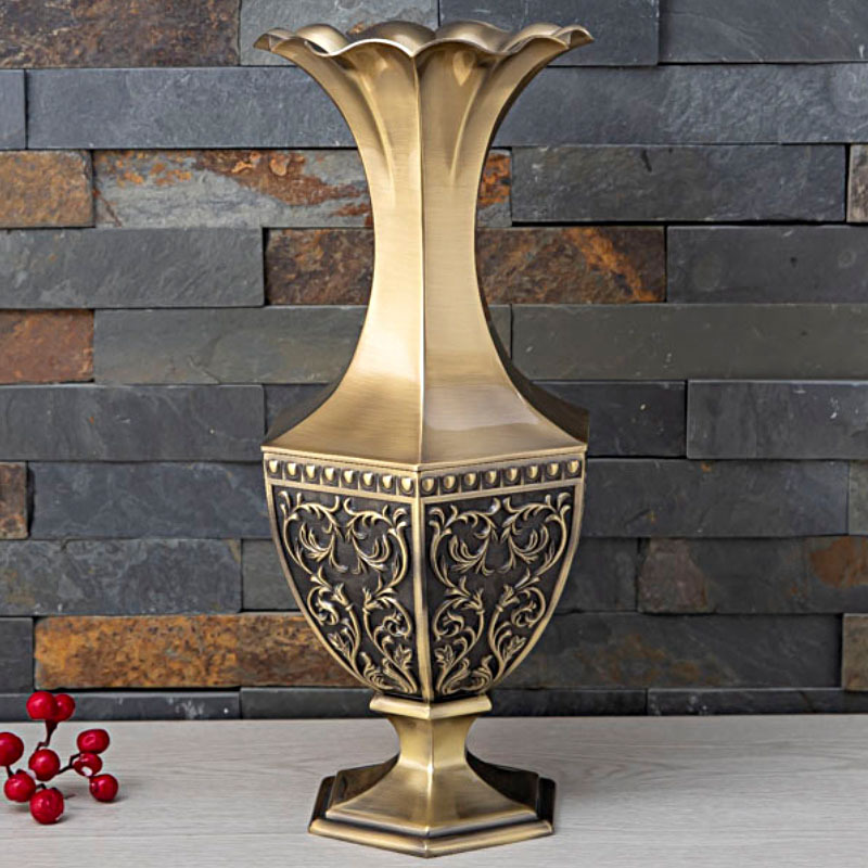 European Retro Hexagonal Vase Ornaments Art Relief Dried Flower Vase Crafts Home Living Room Decoration
