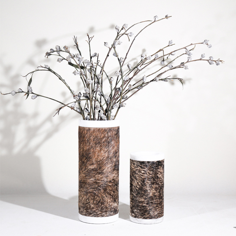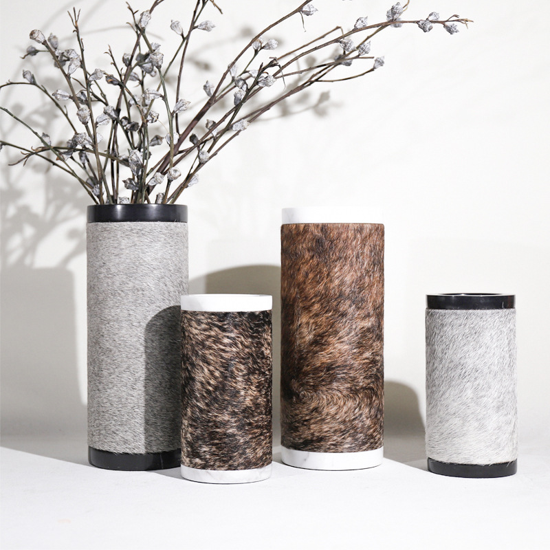 European Marble Flower Vases,Genuine Leather Horse Hair Vases,Sales Department Coffee Table,Flower Vases,Home Entrance,Living Room,Soft Decoration Flower Arrangements