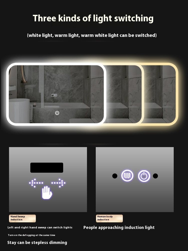 Smart Square Bathroom Mirror, Sanitary Toilet, Induction Touch Light, Makeup, Bluetooth, Anti-fog, Hand-washing Sink, Simple