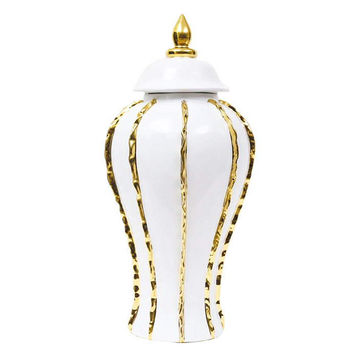 European Light Luxury Electroplated Ceramic Striped General Jar Open Large Vase Model Room Living Room Hotel Entrance Decoration