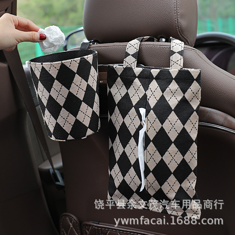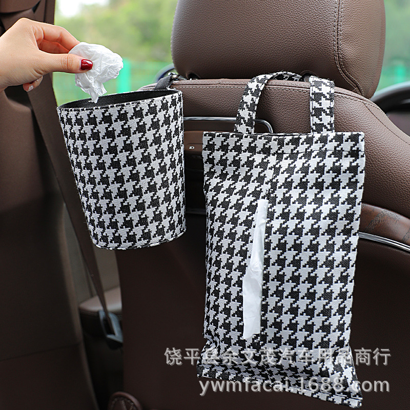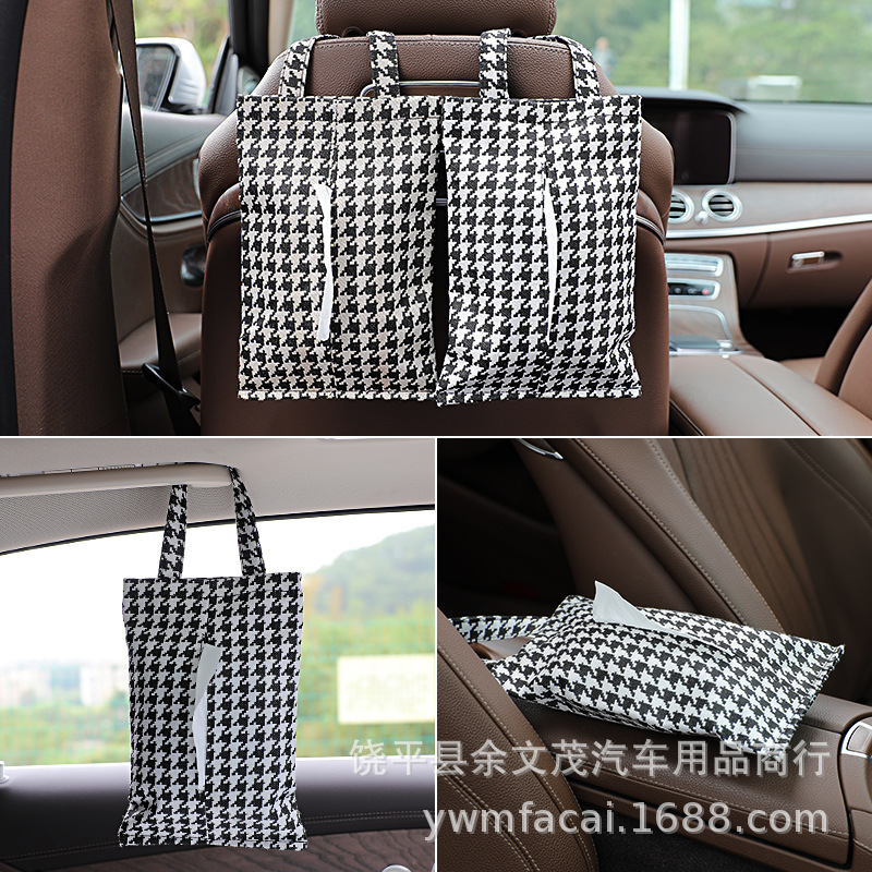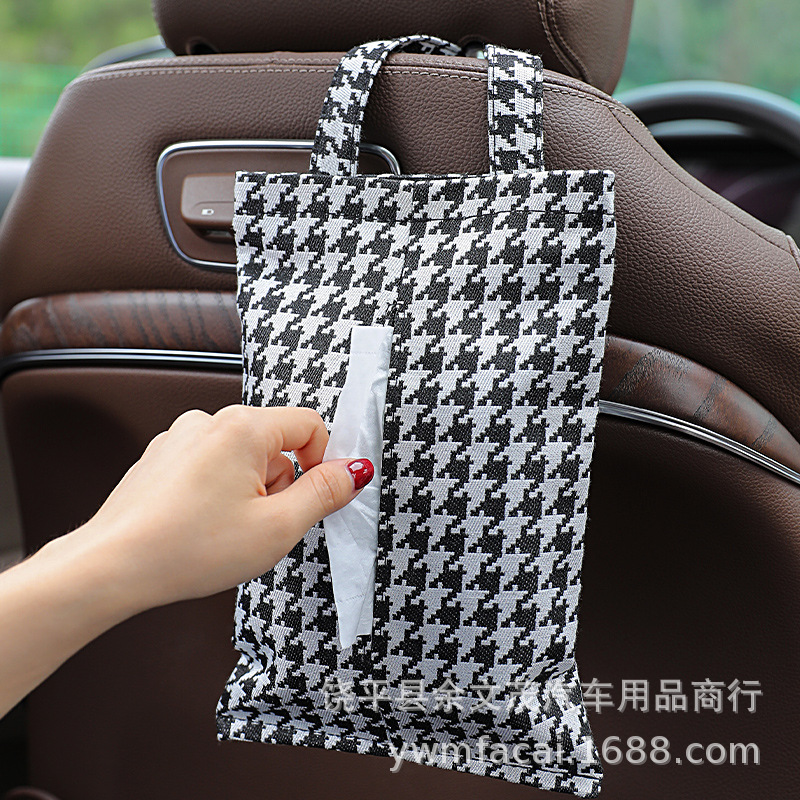Car Tissue Box Hanging Rear Seat Car Tissue Bag Houndstooth Tissue Bag Kitchen Bathroom Hanging Bag Paper Bag