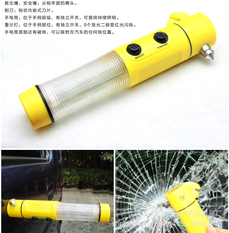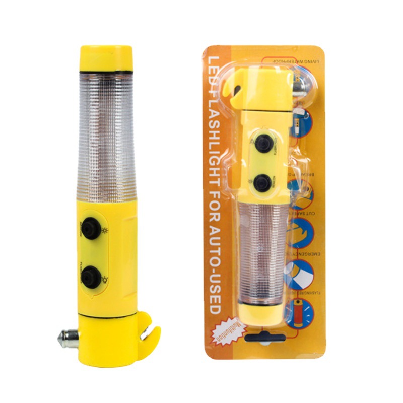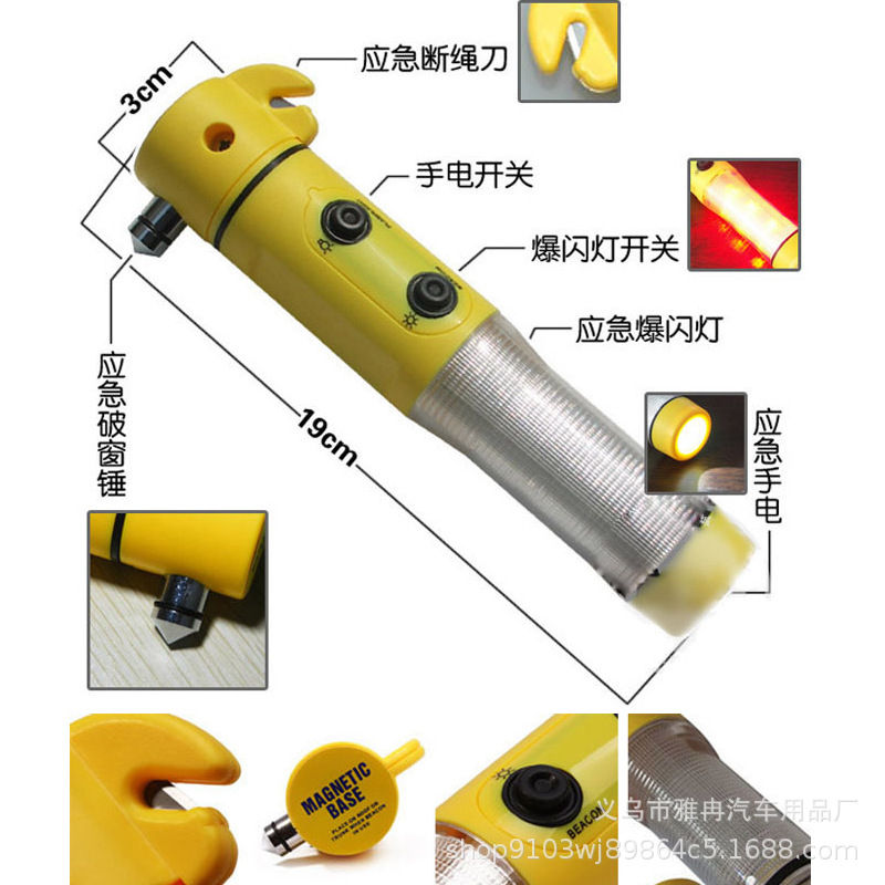 4-in-1 Lifesaving Safety Escape Hammer Cutter Flashlight Tool With Magnet Suction Cup Warning Light