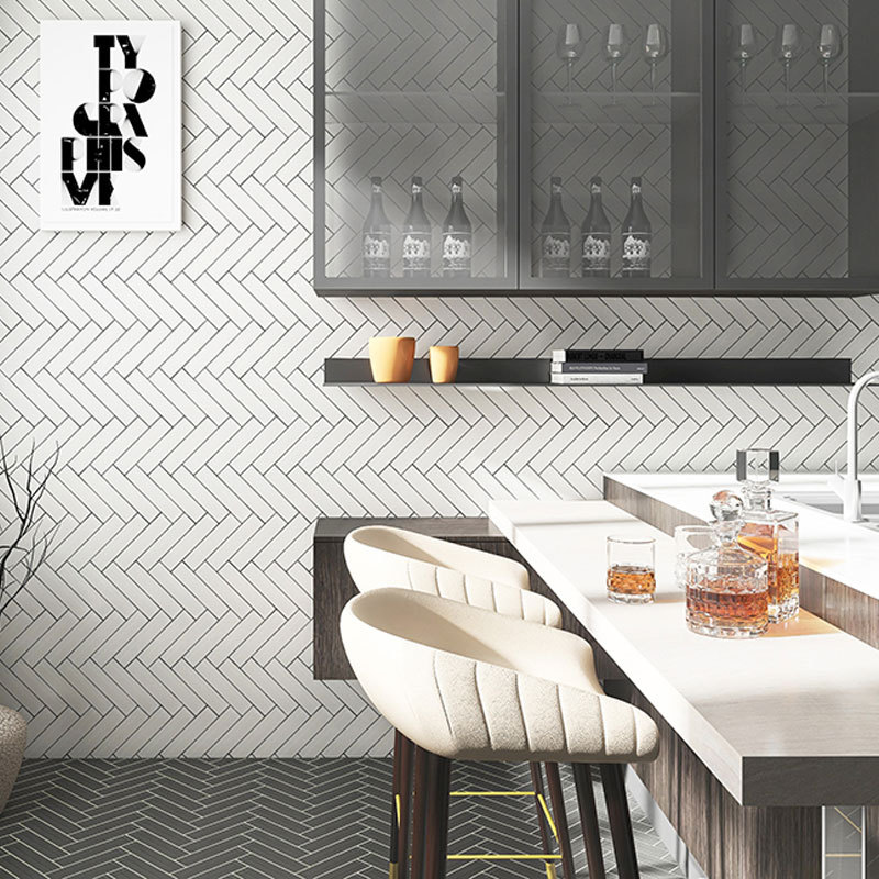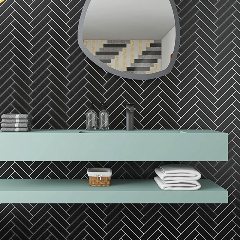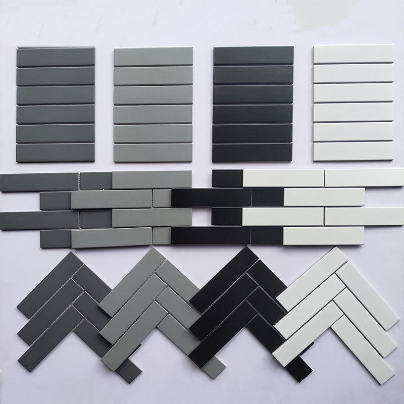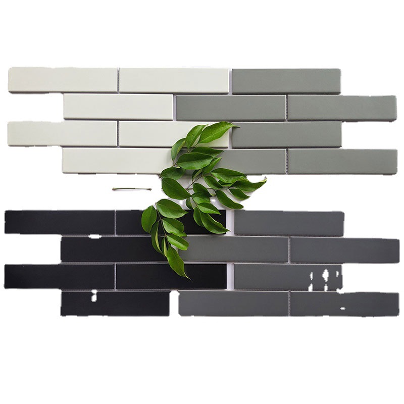 Simple Black Ceramic Mosaic Fishbone Long Small White Brick Balcony Kitchen Bathroom Toilet Tiles45x195