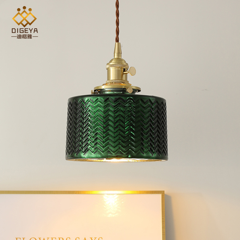 Japanese Style Simple Literary Green Brass Glass Chandelier Creative Personality Restaurant Bar Entrance Balcony Chandelier