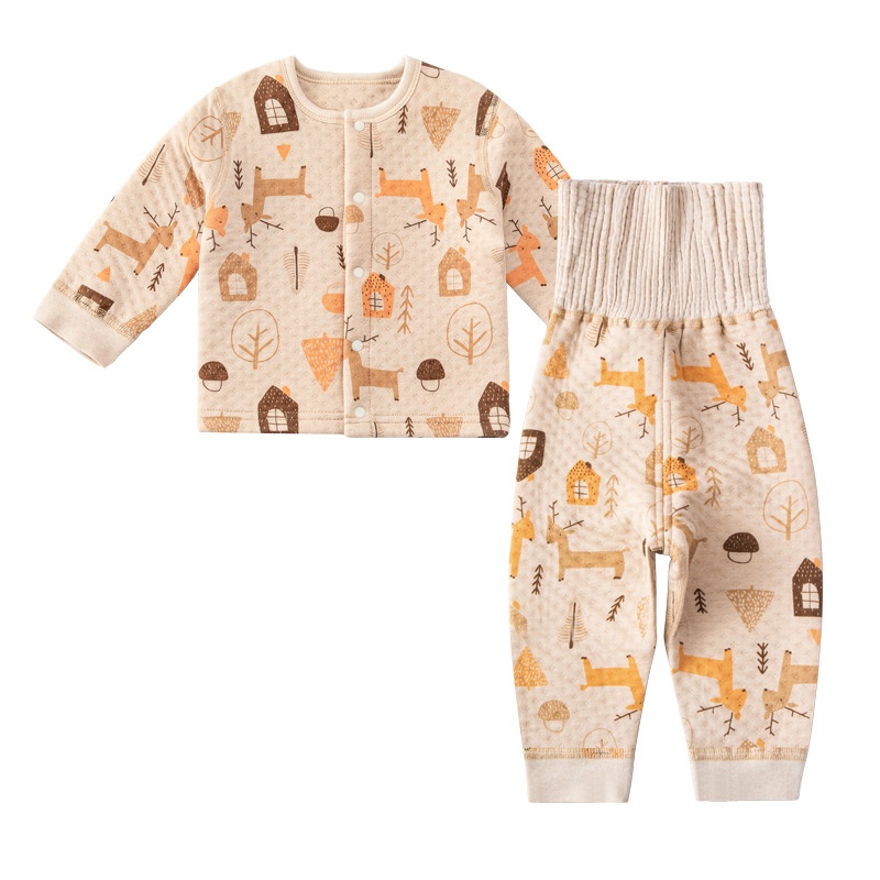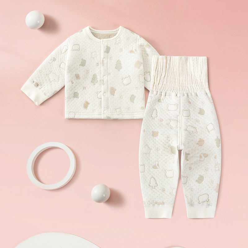 Winter Underwear Set For Children1-6 Years Old, Quilted Children's Split Autumn Clothes And Autumn Trousers, High Waist Belly Protection Baby Warm Pajamas