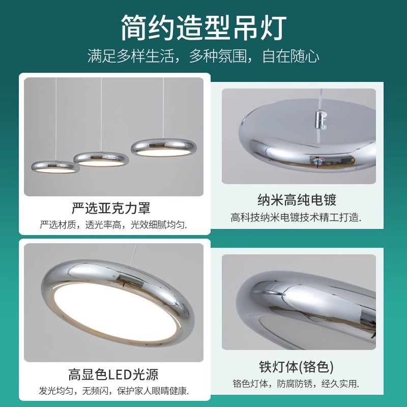 Restaurant Chandelier Modern Minimalist Creative Designer Nordic UFOBar Long Plate Three-head Dining Table Dining Room Chandelier