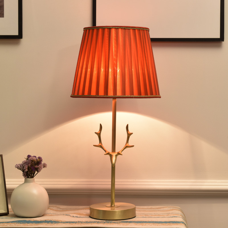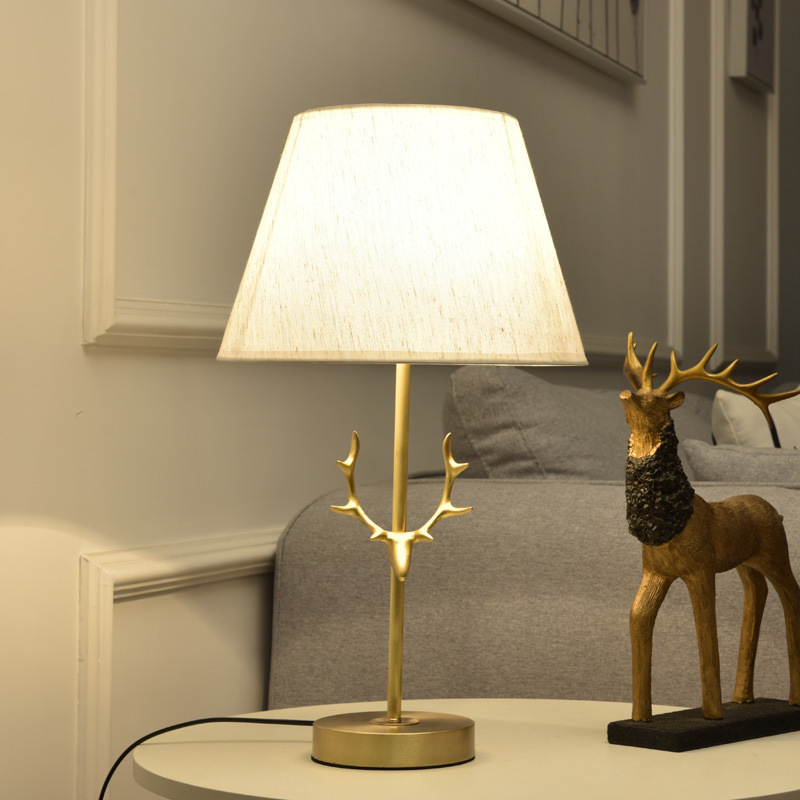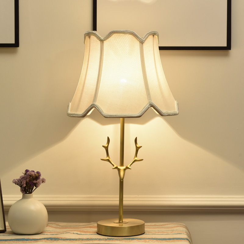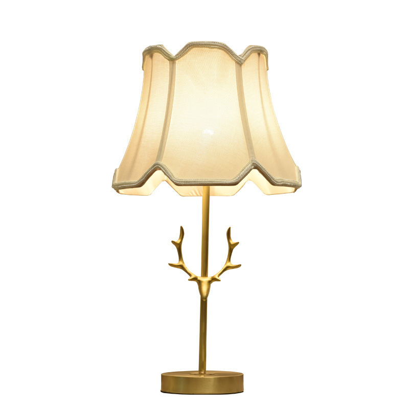 Creative Antler All-copper American Table Lamp Bedroom Bedside Lamp Warm And Romantic Nordic Home Living Room Decoration Counter Lamp