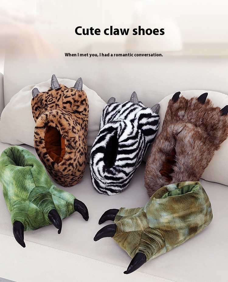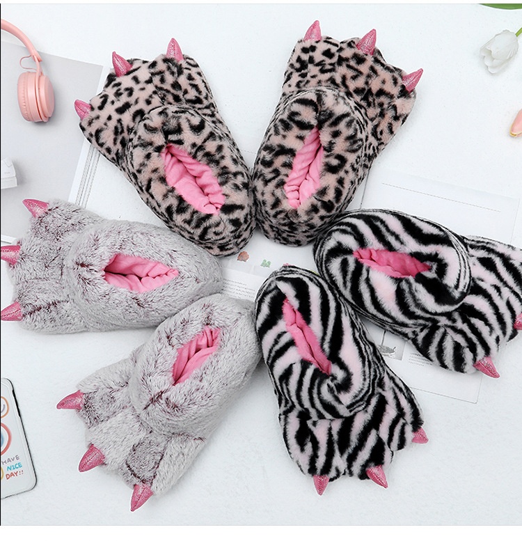 Autumn And Winter Super Soft Velvet Cartoon Paw Shoes Parent-child Thickened Comfortable Plush Cotton Slippers