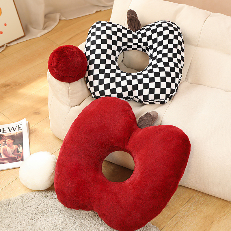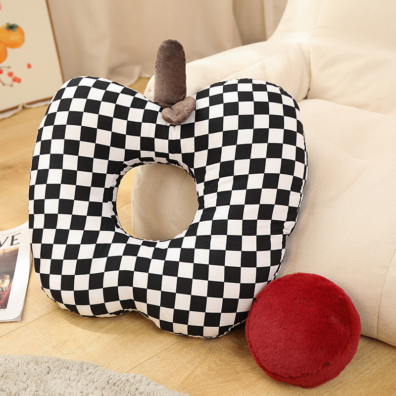 Apple Three-purpose Pillow Home Decoration Sofa Bed Cushion Black And White Plaid Fruit Pillow Creative Gift