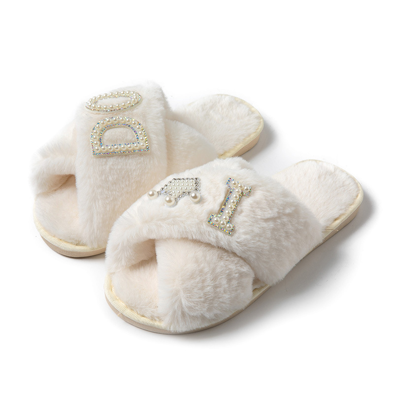 IDOPlush Slippers For Women Indoor Casual Small Fragrance European And American Plush Slippers Versatile Cotton Slippers