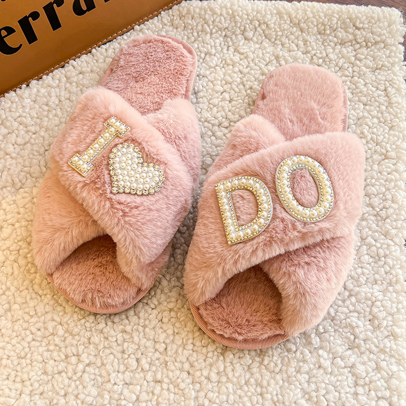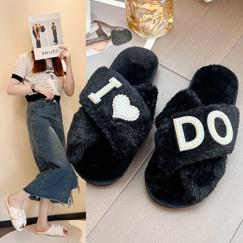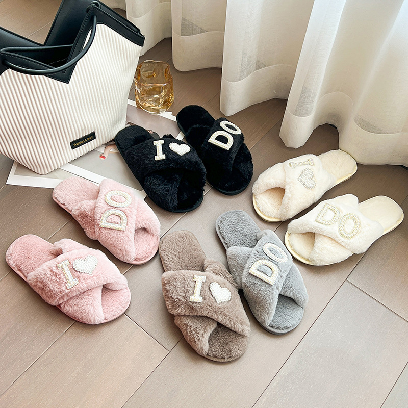 IDOPlush Slippers European And American Indoor Home Casual Plush Slippers Women's Cotton Slippers Love Shoes