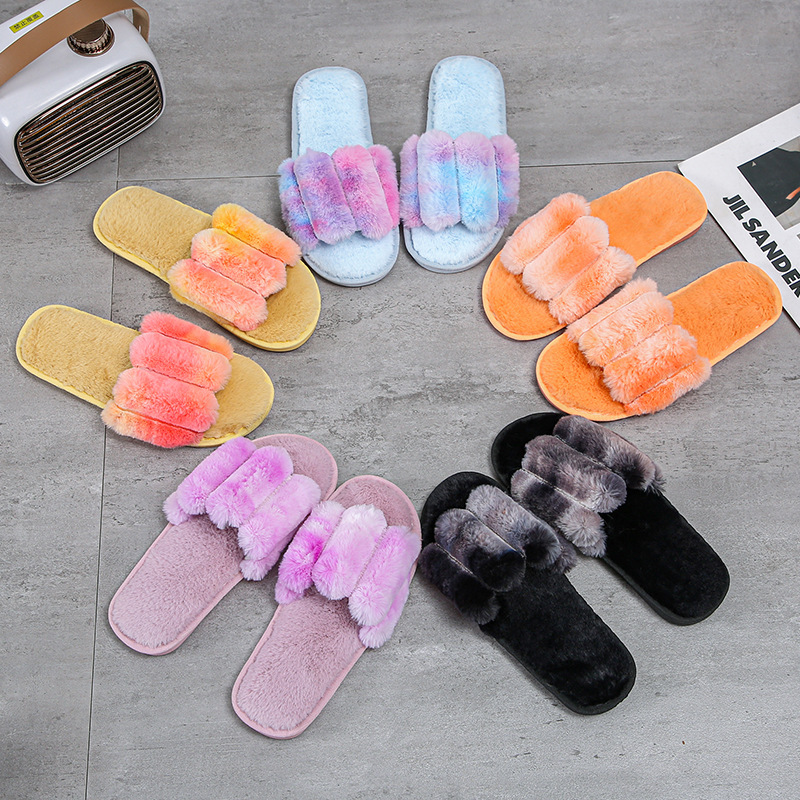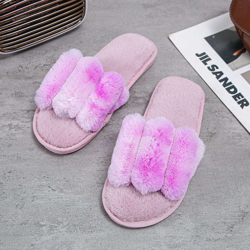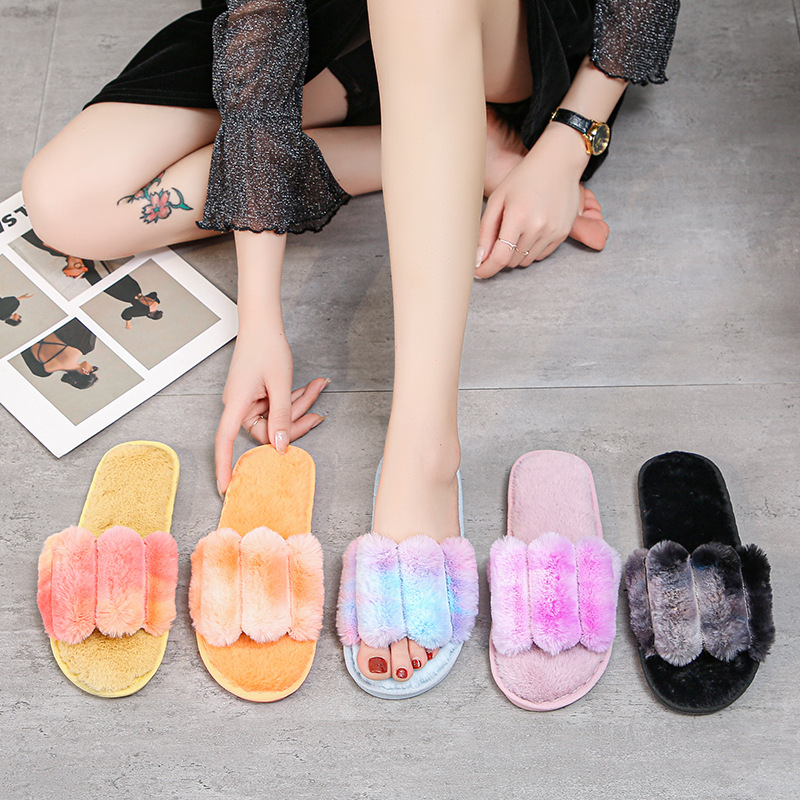 One-Word Plush Slippers For Women Seven Colors Cute Furry Slippers European And American Cotton Slippers Can Be
