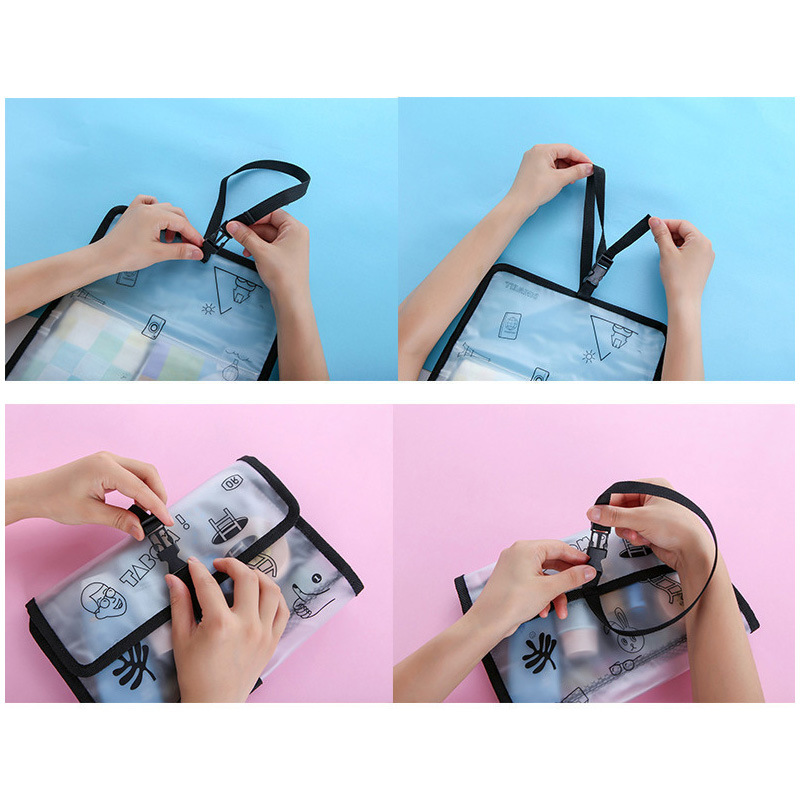 PVCTransparent Visible Folding Hanging Toiletry Bag Travel Waterproof Cosmetic Bag Jujia Bathroom Toiletry Hanging Bag