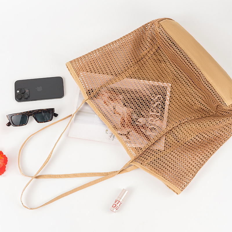 Multifunctional Casual Large Shoulder Shopping Bag Outdoor Swimming Beach Bag Breathable Visible Mesh Tote Bag Storage Bag