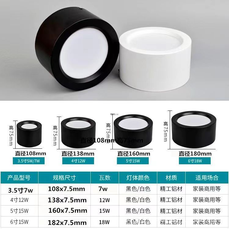 Surface-mounted Downlight Led Round Ceiling Light Aisle Corridor4 Inches12w6 Inches18 Watts Free Opening Commercial Surface-mounted Lights