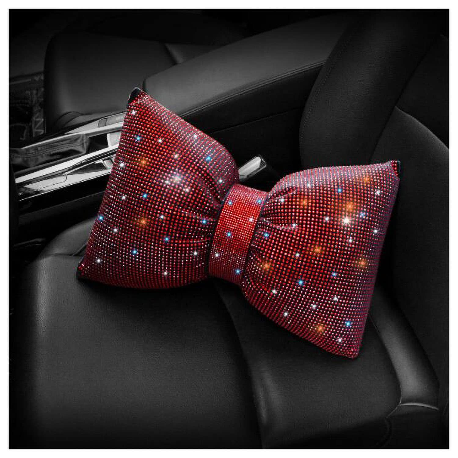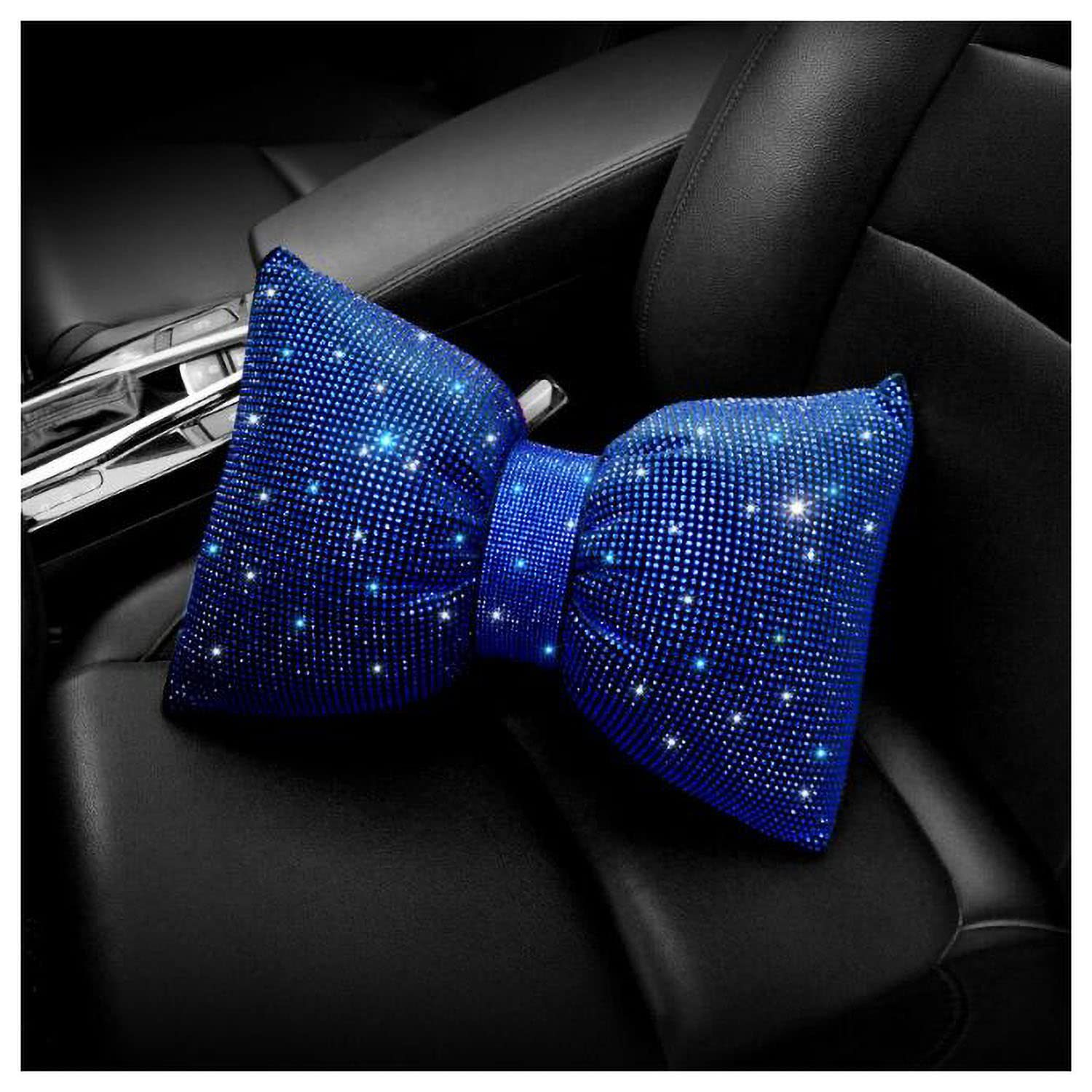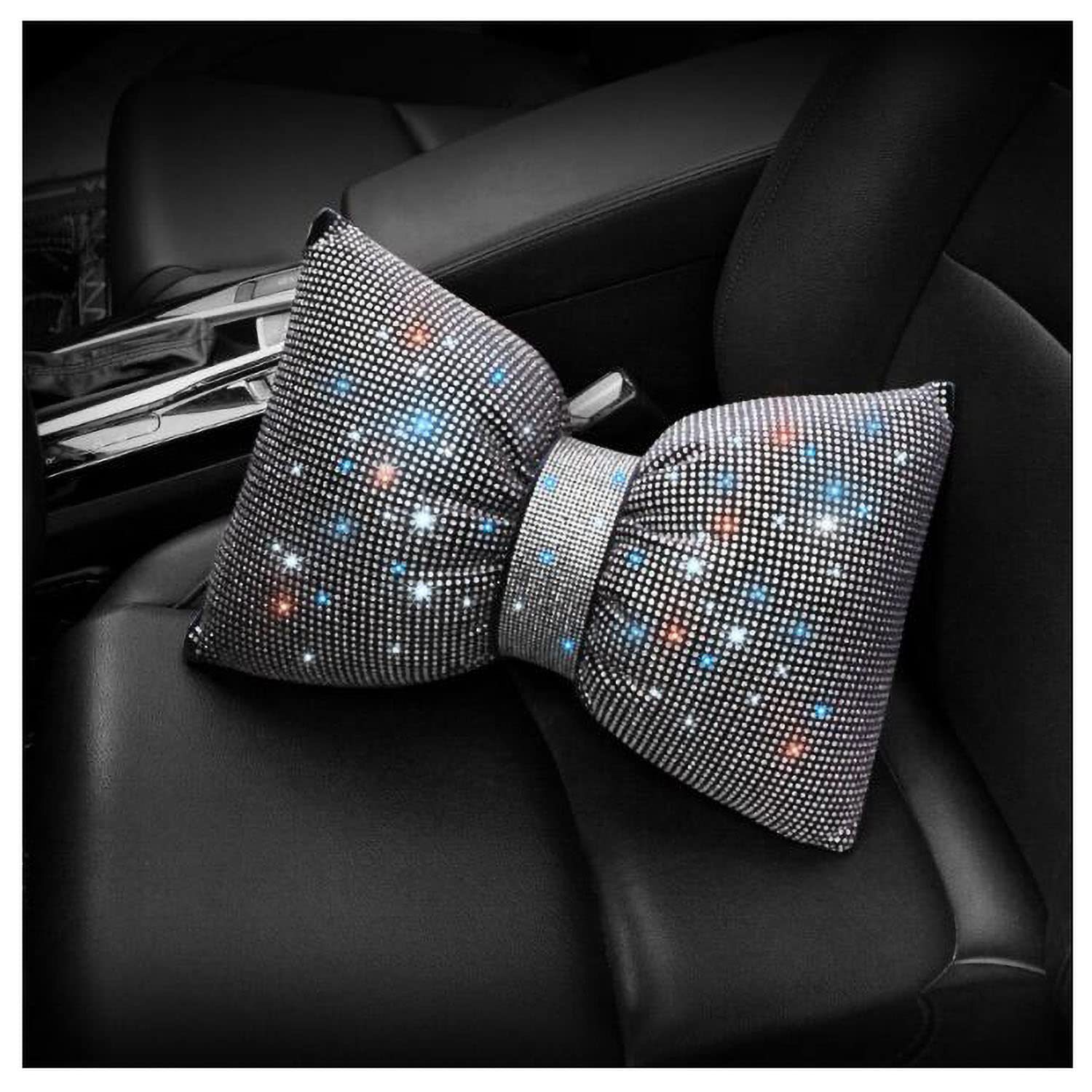 Car Diamond-encrusted Headrest Pillow,Car-mounted Car Interior Hot-drilled Full-drilled Rhinestones With Diamond Flash Diamond Bow Neck Pillow