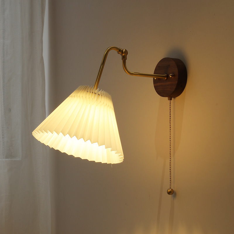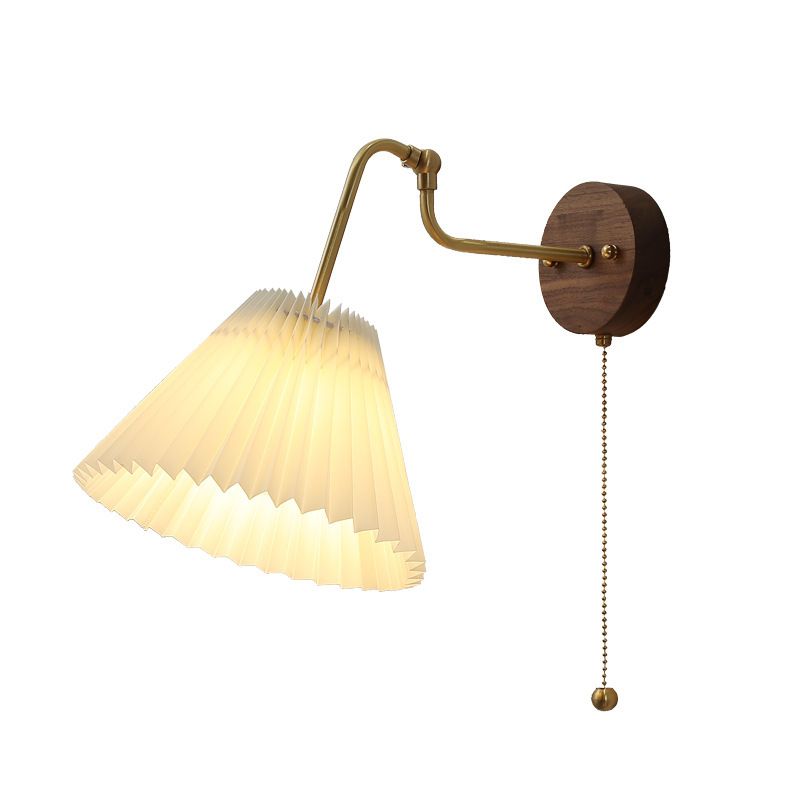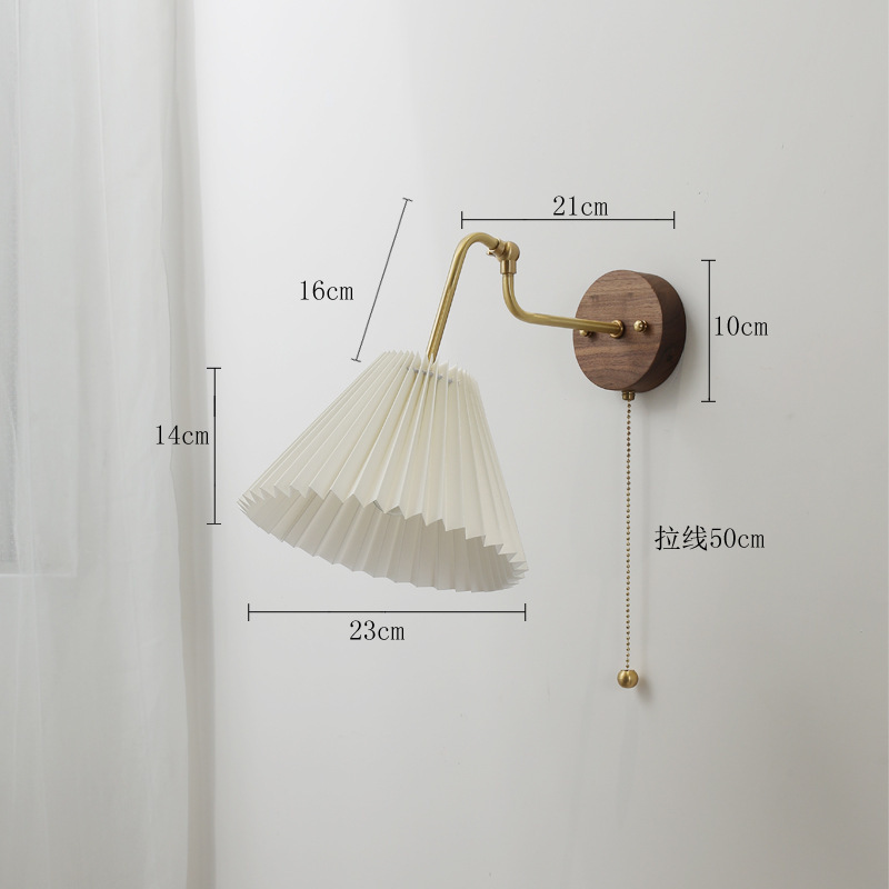 Walnut Japanese Nordic Bedroom Bedside Lamp Retro Background Wall Bookstore Restaurant Brass Pleated Lampshade Wall Lamp