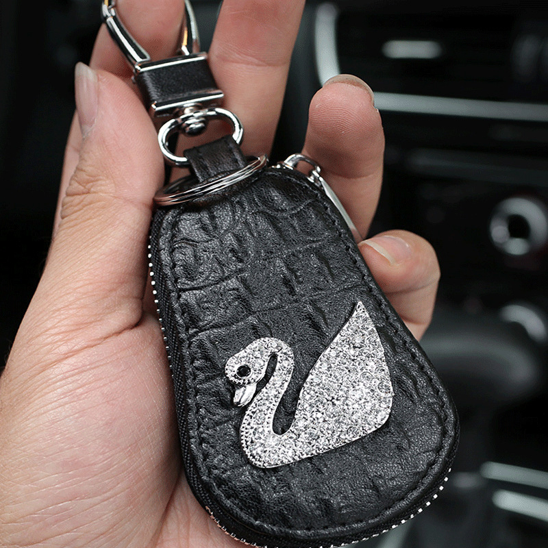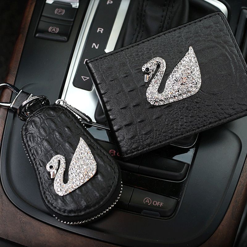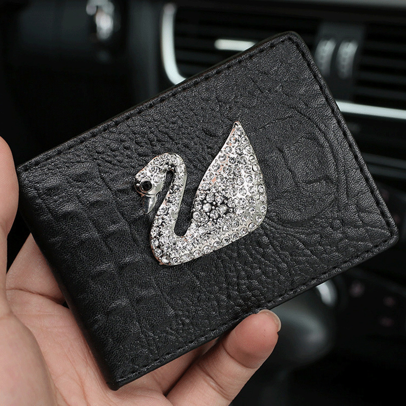 Swan Lady's Driver's License Rhinestone Car Driver's License Driving License Bag Document Leather Case Clip Key Case Case