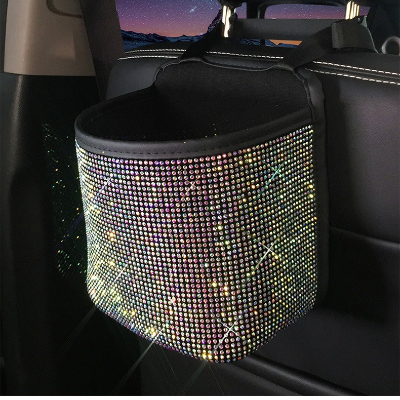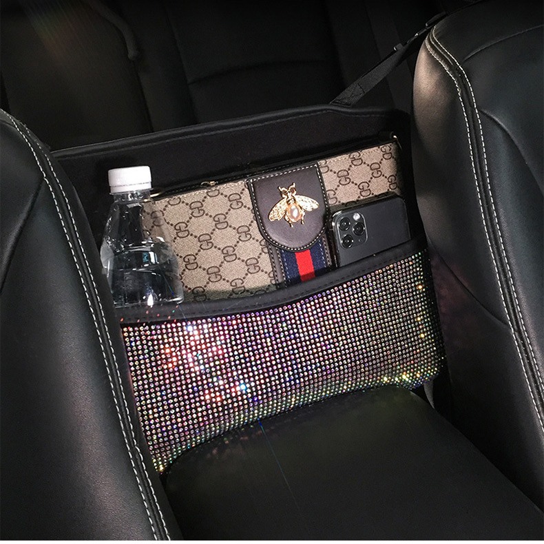 Car Seat Backrest Personalized Diamond-encrusted Hanging Storage Garbage Bag Net Pocket Car Multi-functional Storage Bag Universal