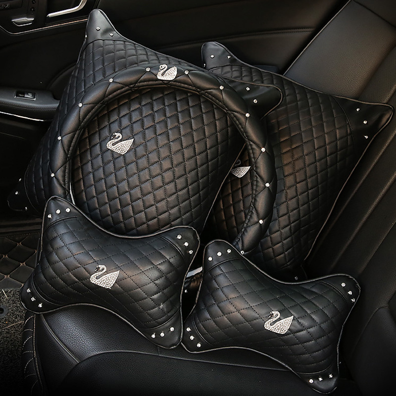 Cartoon Swan Cute Car Inlaid With Diamonds And Rhinestones For All Seasons Car Headrest Pillow Neck Pillow Waist Pillow For Women