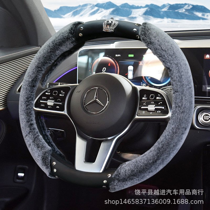 Diamond Handle Cover Car Steering Wheel Cover Crown Rabbit Fur Handle Cover Winter Warm Handle Cover Plush Handle Cover