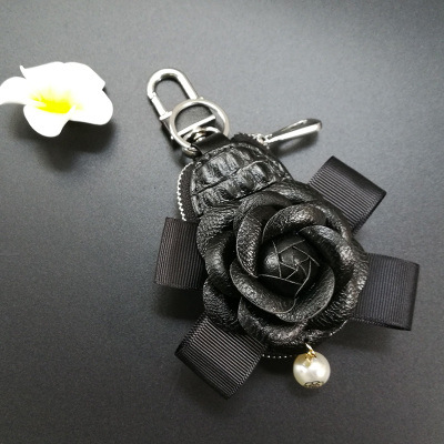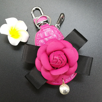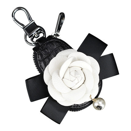 Camellia Car Key Bag Pearl Bow Car Key Protective Cover Car Key Bag Interior For Women