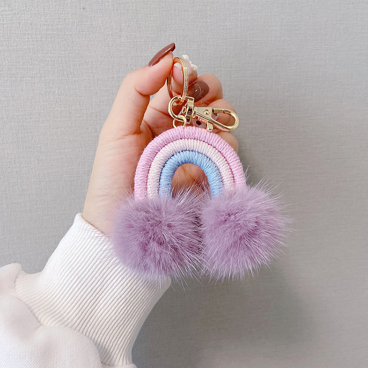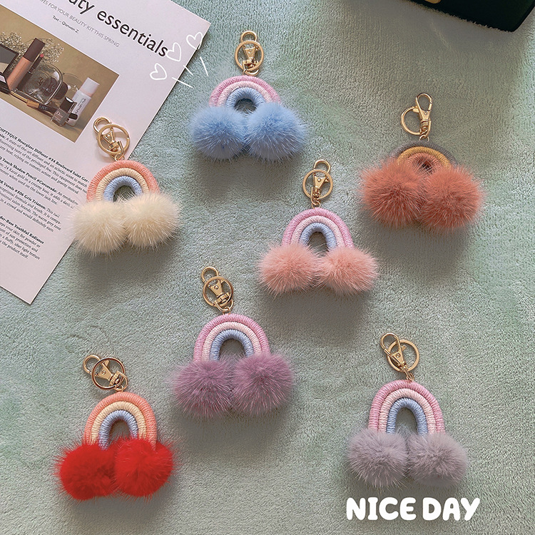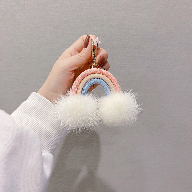 Real Mink Fur Ball Rainbow Cloud Car Keychain Pendant Creative Cute Internet Celebrity Bag Pendant Small Gift For Women