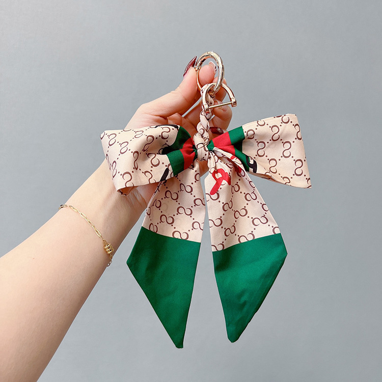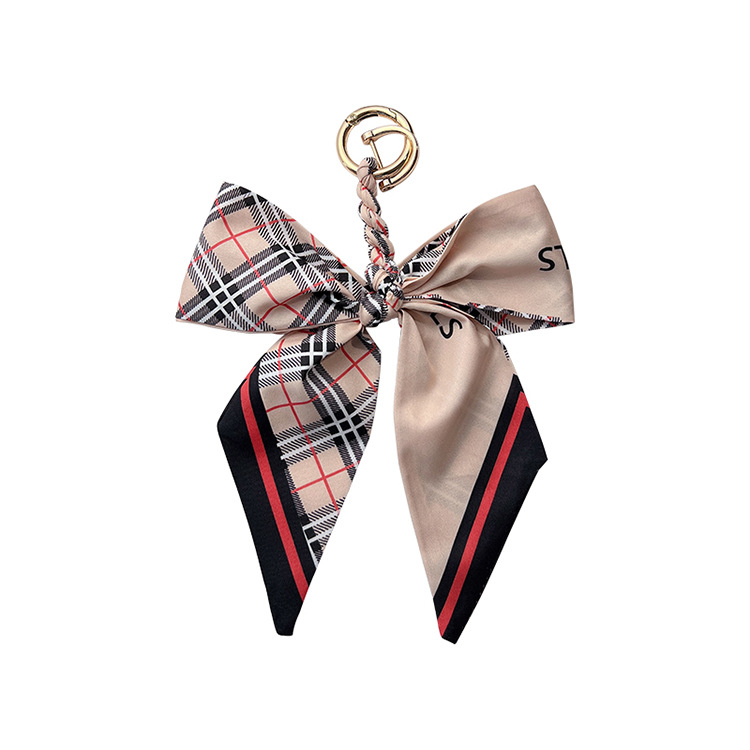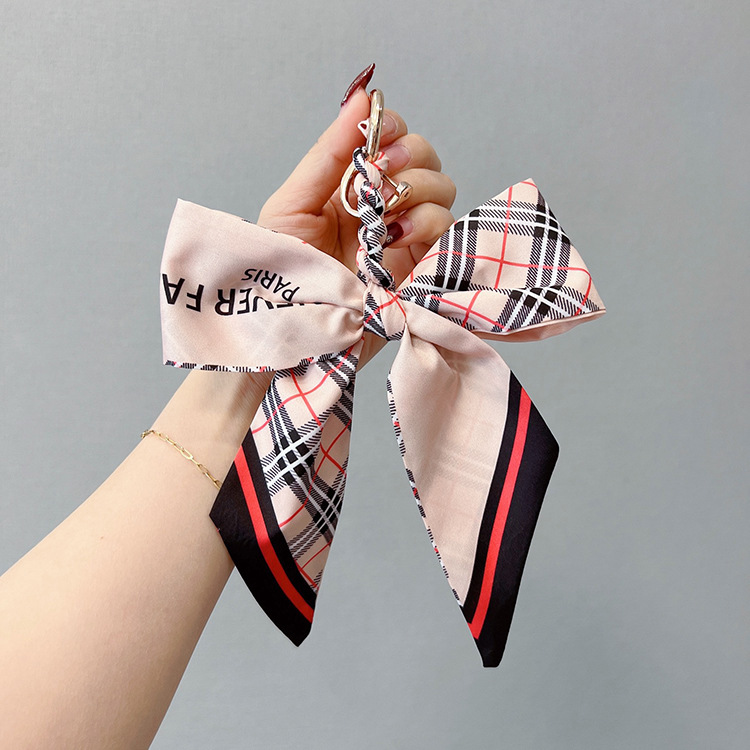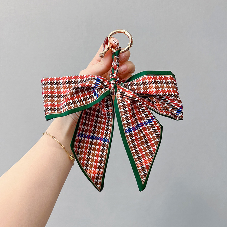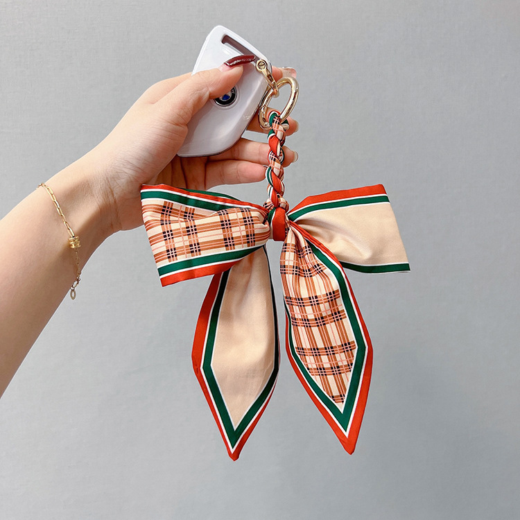 Fashion Plaid Silk Scarf Bow Car Keychain Personalized Braided Bow Tie Key Chain Ladies Bag Pendant Ring