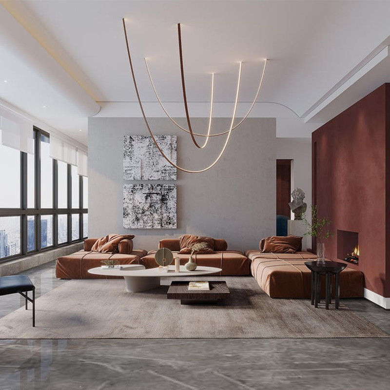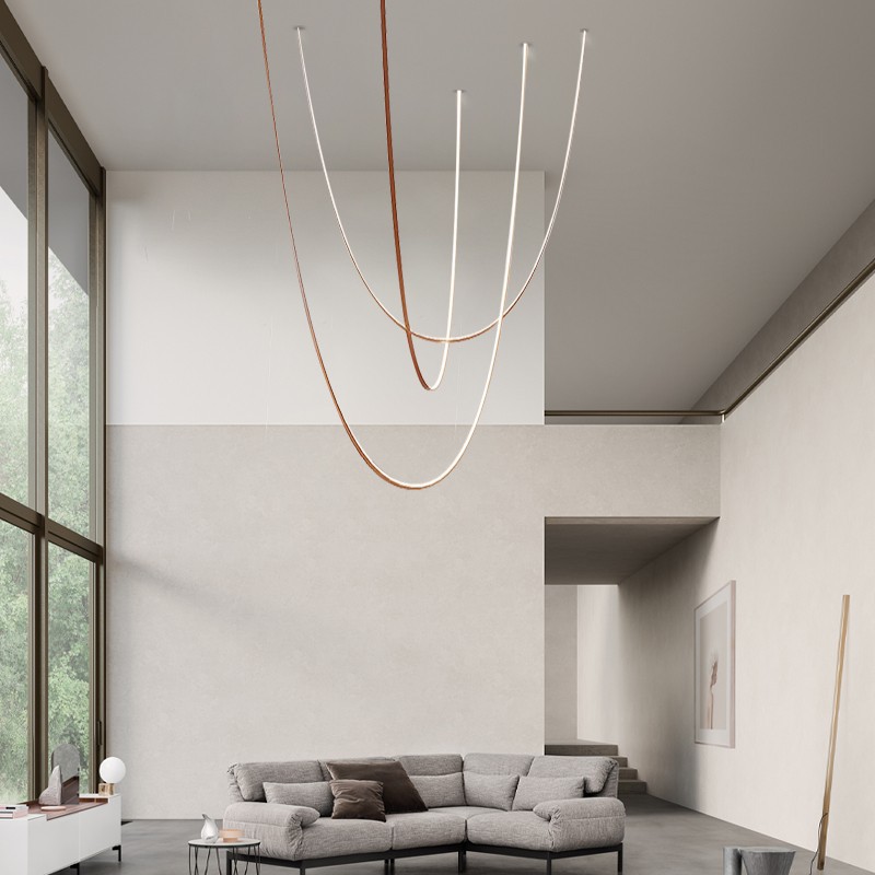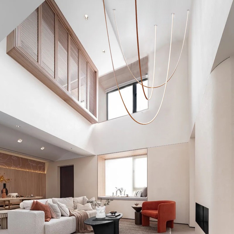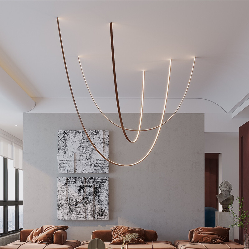 Post-modern Designer Restaurant Model Room Creative Art High-ceiling Duplex Building Exhibition Hall Bar Line Belt Chandelier