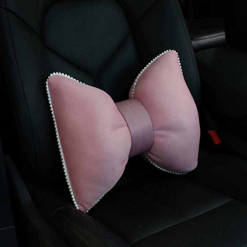 Car Headrest Cushion Cute Bow Summer Ice Silk Headrest Anti-fatigue Car Neck Pillow Waist Cushion For Women