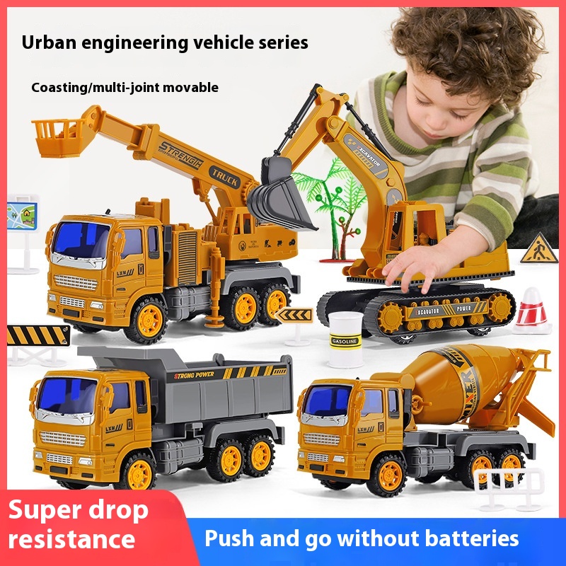 Engineering Vehicle Toy Boy Toy Set Inertial Sliding Toy Car Mixing Dump Crane Excavator Gift Box