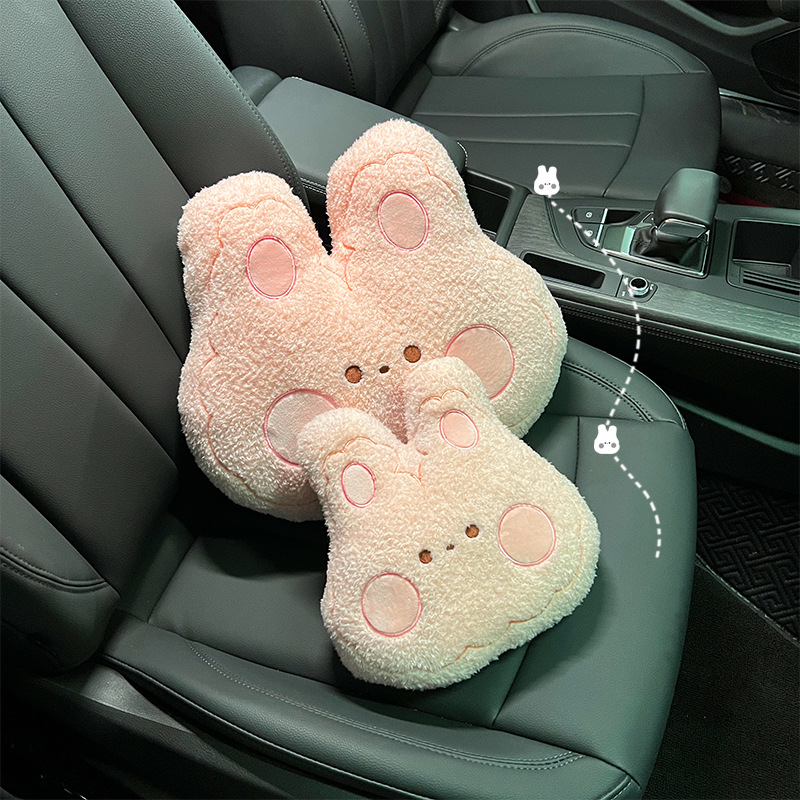 Little Rabbit Car Headrest Neck Pillow Plush,Soft And Comfortable Car Interior Cushion Cute Cartoon Car Headrest